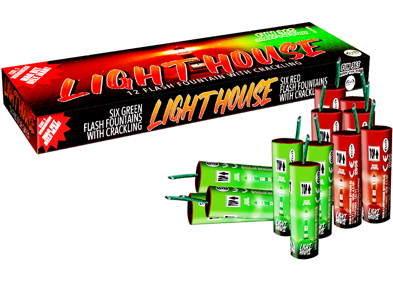 6 rode en 6 groene flash fonteinen met crackling.